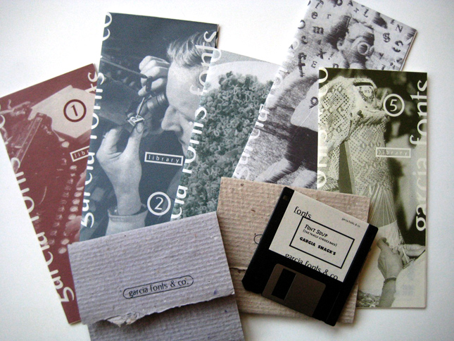 Garcia fonts fue un sello independiente de tipografÃa que se autogestionaba con la distribución e intercambio de sus fuentes; las presentadas en el catálogo, en su gran mayorÃa, disolvÃan la frontera entre arte y diseño, cuestionaban las ideas establecidas en torno a la legibilidad de la letra, exploraban el lado emocional de la tipografÃa, siempre al margen de perseguir objetivos comerciales o estrictamente funcionales.