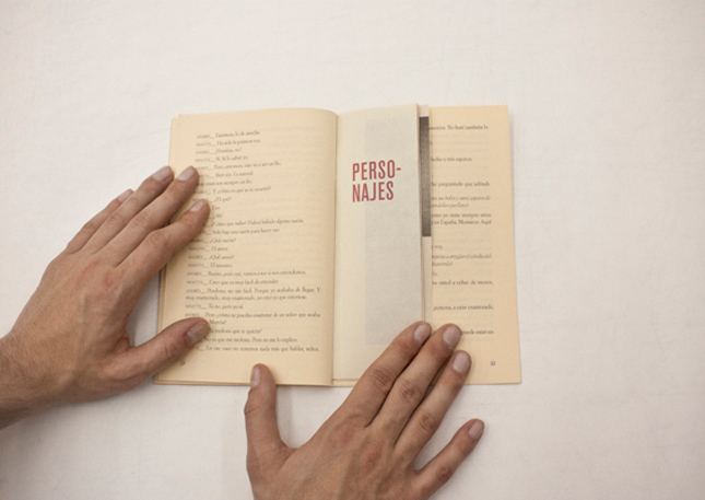 Ante esta problemática y encontrándome frente a un estilo narrativo que ofrece tantÃsimos datos sobre lo que está sucediendo en sus páginas y, más aún, tantÃsimos datos de cómo tiene que suceder, me planteé trasladar la esencia de la puesta en escena, de una tarde con un par de entradas para asistir al teatro, al libro (como objeto) que recoge la obra.